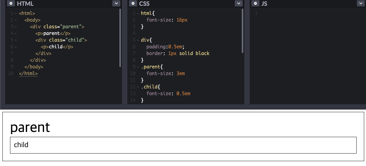 즉, em은 부모의 폰트 사이즈를 곱한 값이다.