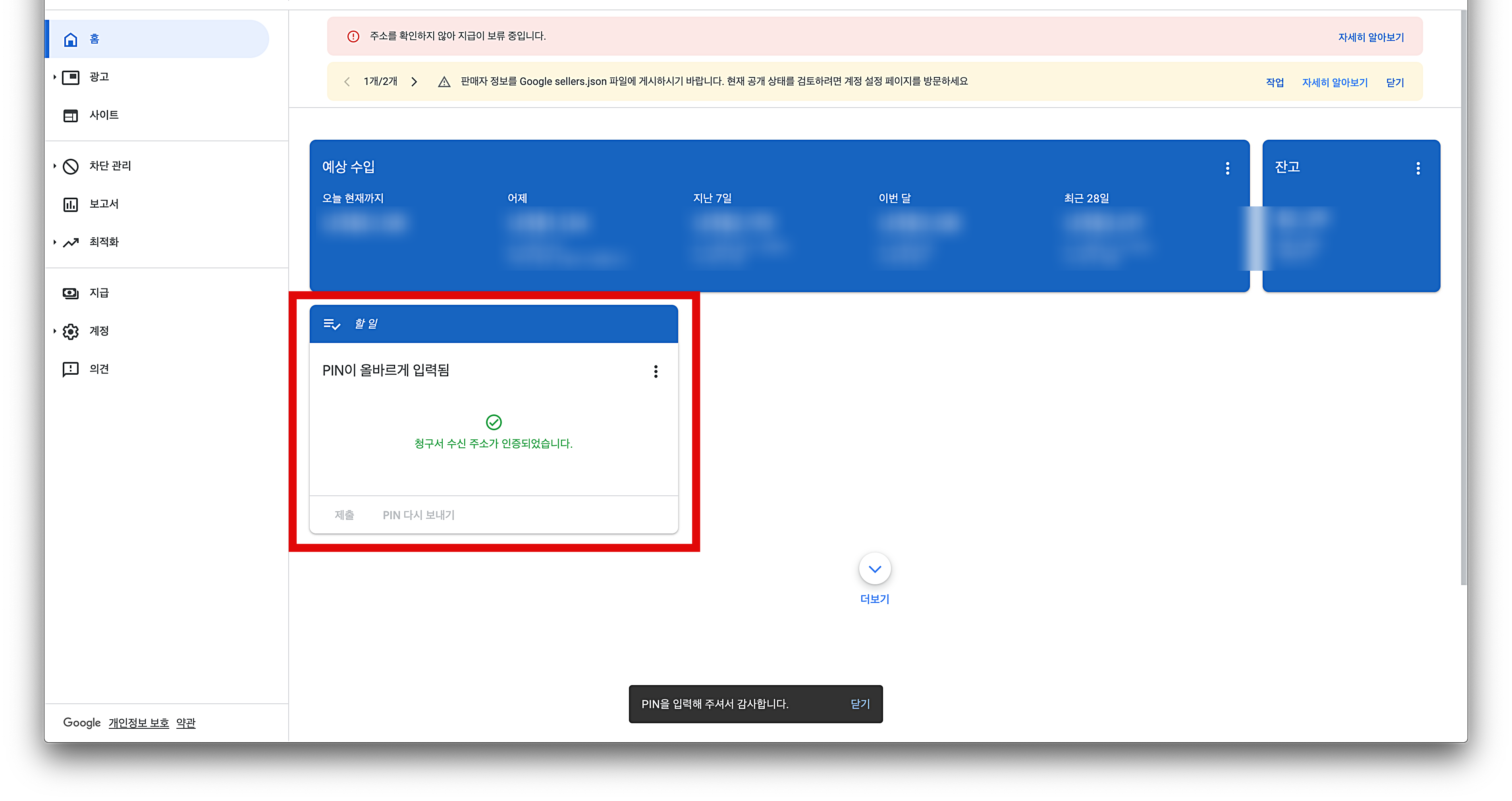 애드센스 주소 확인과 pin 번호 인증 방법에 대해 소개하겠다.