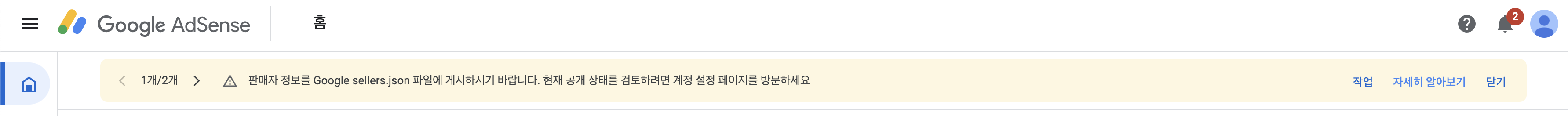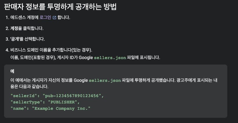 판매자 정보를 Google sellers.json 파일에 게시하시기 바랍니다.