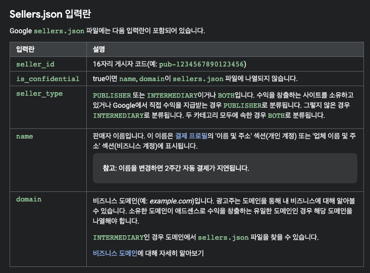 sellers.json으로 판매자 정보 제공하기 - AdSense 고객센터