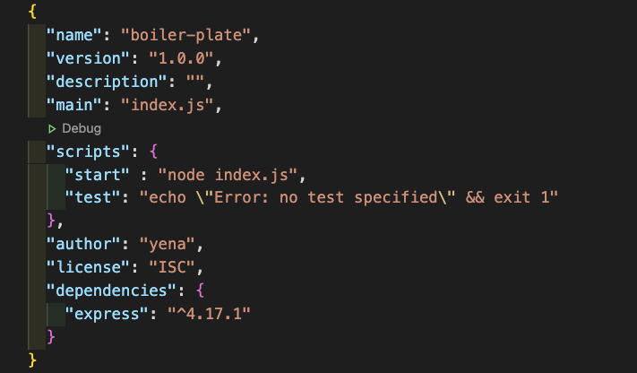 $ npm init //node 기본 세팅(package.json 자동 생성)